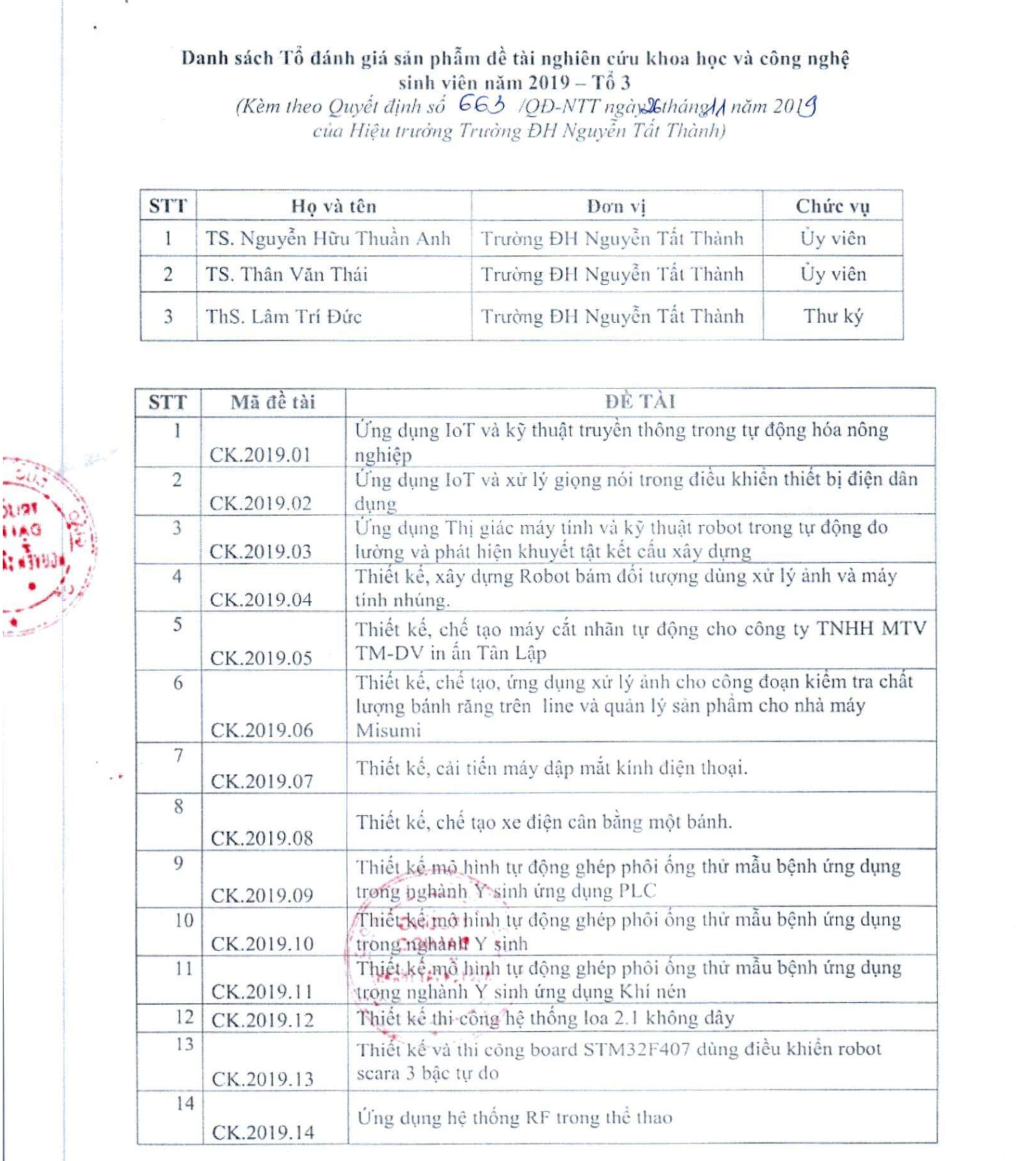Thống kê nghiên cứu khoa học của sinh viên năm 2019-2020 khoa KT-CN