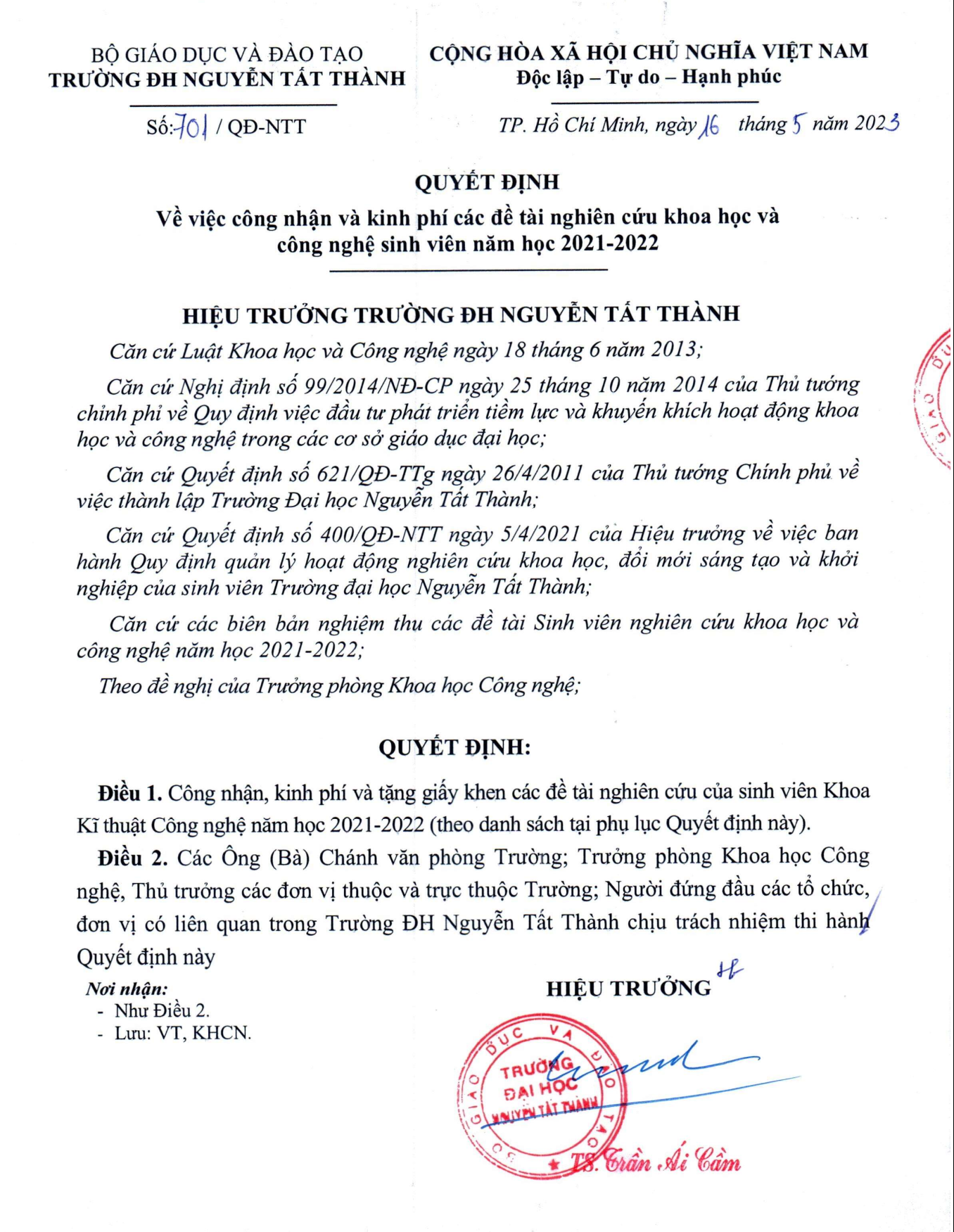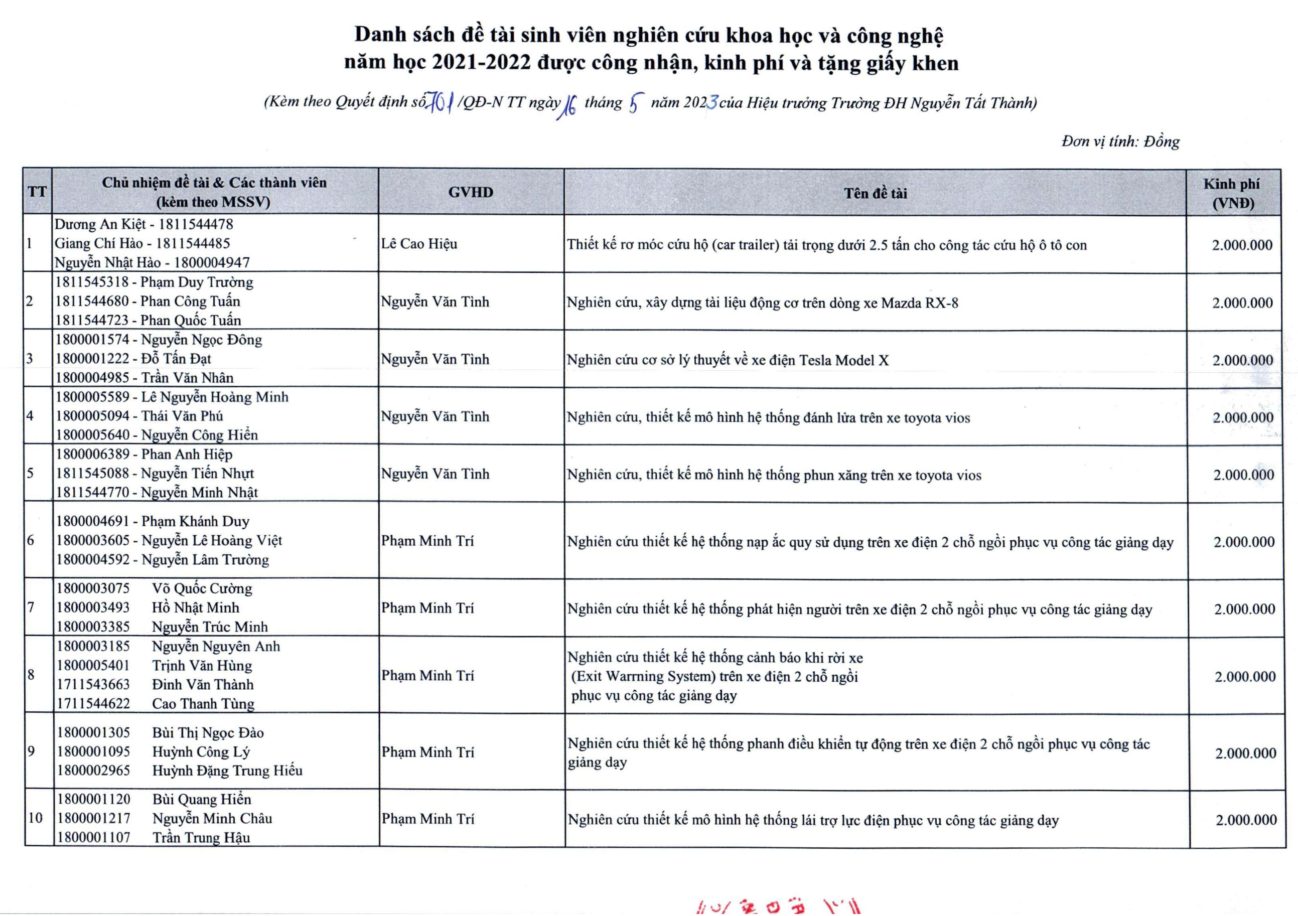 Thống kê nghiên cứu khoa học của sinh viên năm 2021-2022 khoa KT-CN