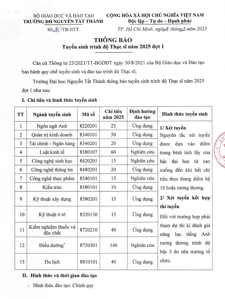 THÔNG BÁO TUYỂN SINH THẠC SĨ ĐỢT 1 NĂM 2025 https://saudaihoc.ntt.edu.vn/tin-tuc/thong-bao-tuyen-sinh-thac-si/