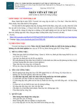Công ty TNHH TMDV VIEWTEK LAB Tuyển dụng