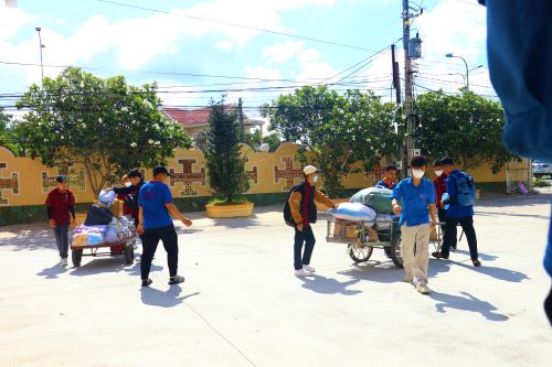 Hình 2 Các bạn TNV hỗ trợ vận chuyển vật dụng cho chương trình.