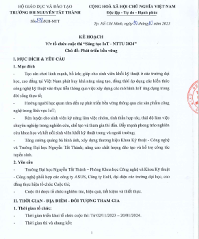 / Kế hoạch tổ chức cuộc thi sáng tạo IoT NTTU 2024