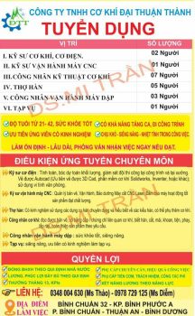 Công ty TNHH Cơ Khí Đại Thuận Thành tuyển dụng