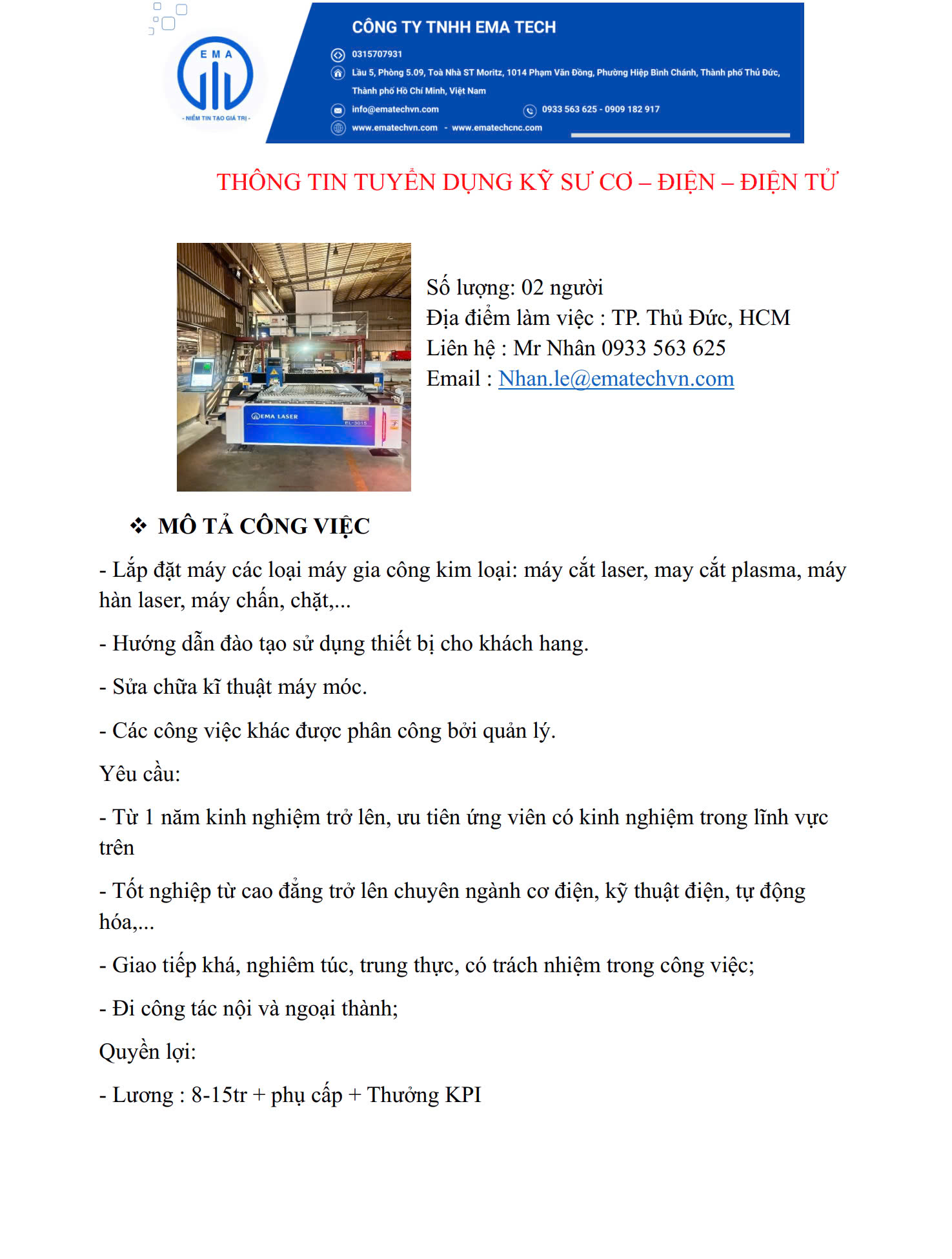 / CÔNG TY TNHH EMA TECH THÔNG TIN TUYỂN DỤNG