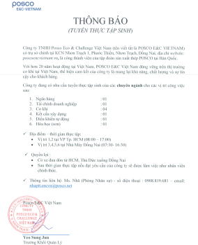 công ty tnhh posco eco & challenge việt nam tuyển dụng thực tập sinh